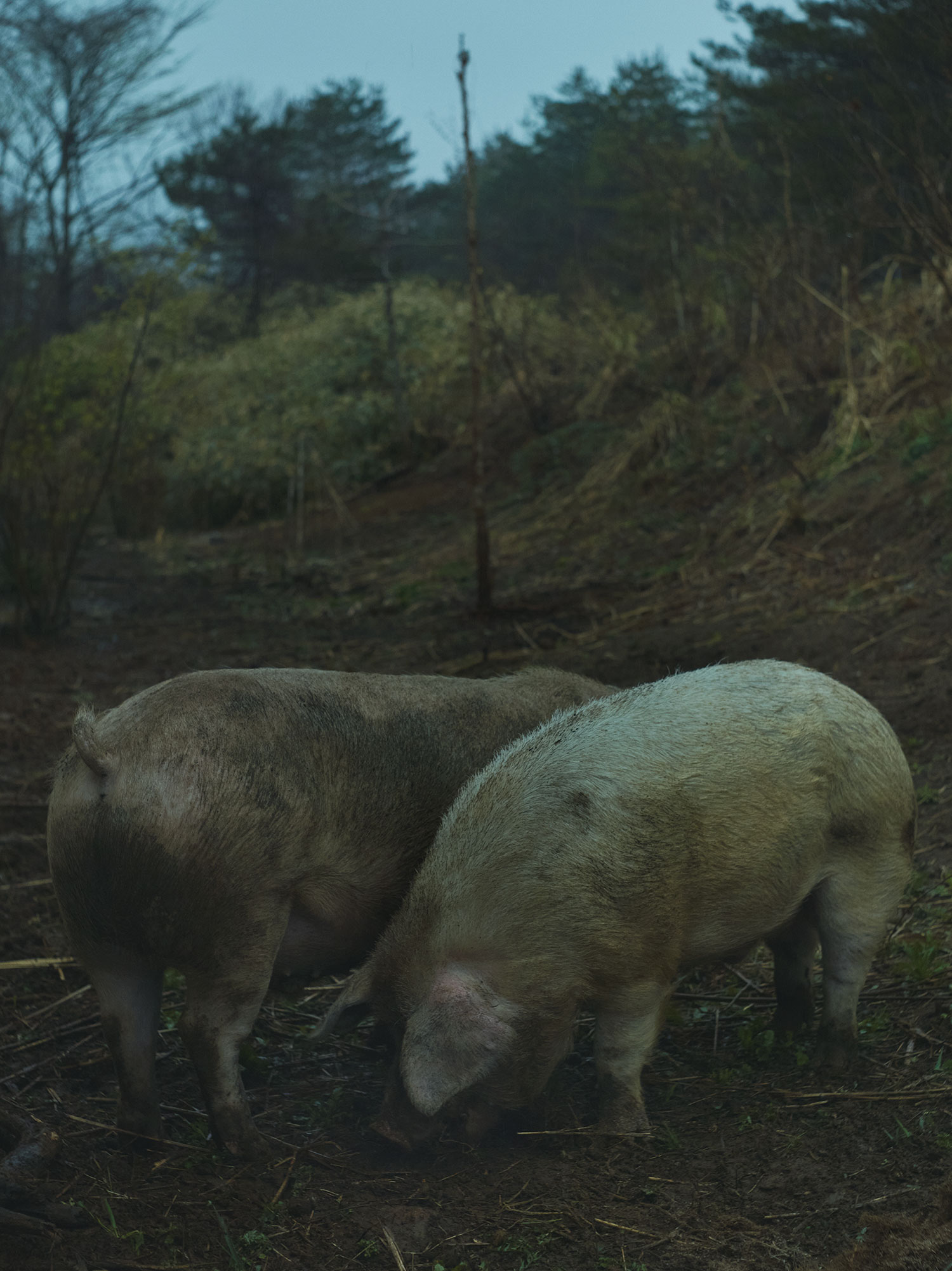 豚は、広大な放牧場にて、